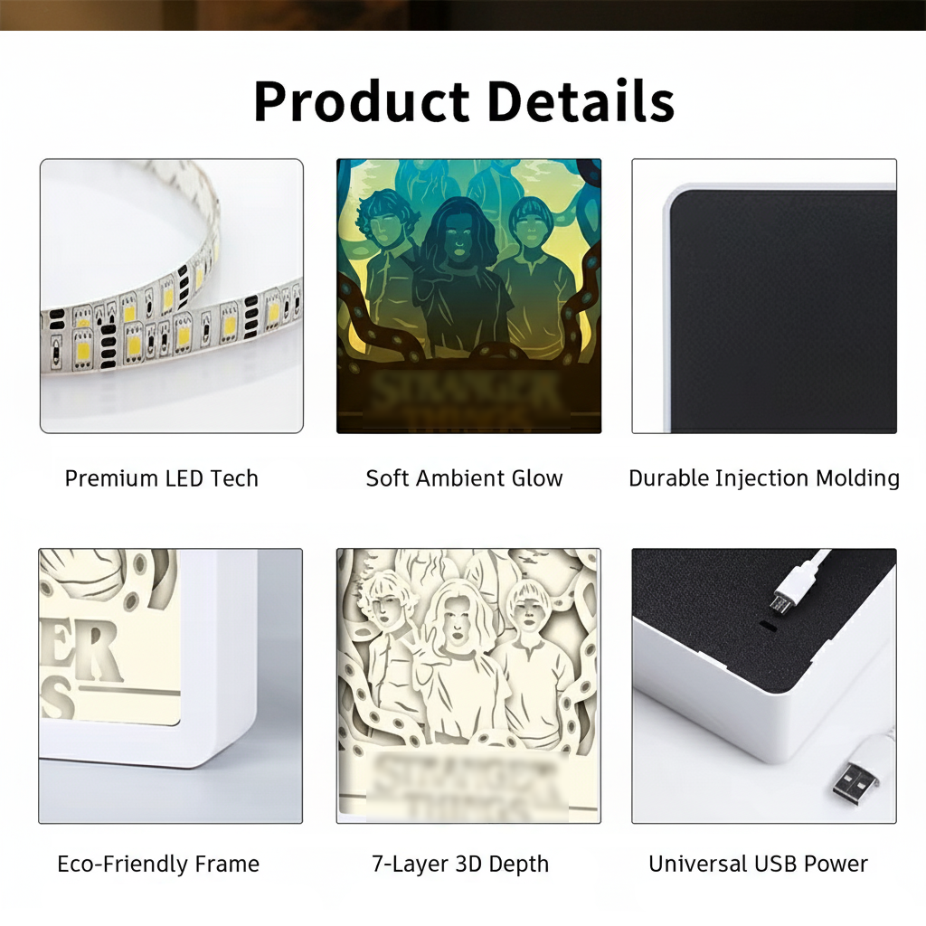 Experience the ultimate in ambient lighting: our high-quality LED strip provides stable light transmission that is soft, soothing, and never dazzling. Forget bulky power bricks; enjoy the convenience of USB charging for fast, universal power. Every detail, from the environmental-friendly materials to the seven-layer paper carving, is designed for the comfort and lasting display of the true fan.
